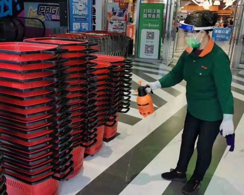 公司第一時(shí)間統(tǒng)計(jì)全體員工健康安全狀況,對(duì)商場(chǎng)外圍、各出入口進(jìn)行整體消殺;百貨、超市公共區(qū)域設(shè)施、電梯、衛(wèi)生間等區(qū)域每?jī)尚r(shí)進(jìn)行消殺;開啟商場(chǎng)新風(fēng)系統(tǒng)進(jìn)行空氣對(duì)流,并對(duì)空調(diào)系統(tǒng)進(jìn)行消殺,為顧客營(yíng)造安全放心的購(gòu)物環(huán)境。