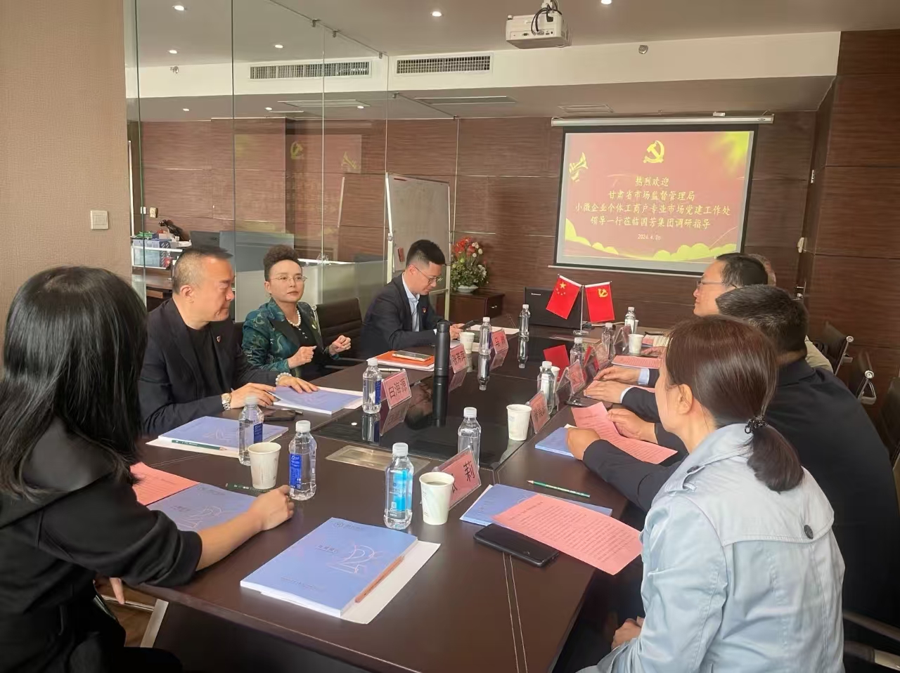 2024年4月26日,甘肅省市場監(jiān)督管理局小微企業(yè)個(gè)體工商戶專業(yè)市場黨建工作處侯巍處長與省、市、區(qū)、街道四級(jí)市場監(jiān)管局非公有制經(jīng)濟(jì)黨建處室相關(guān)負(fù)責(zé)人一行蒞臨國芳集團(tuán)黨委進(jìn)行調(diào)研指導(dǎo)并座談交流。